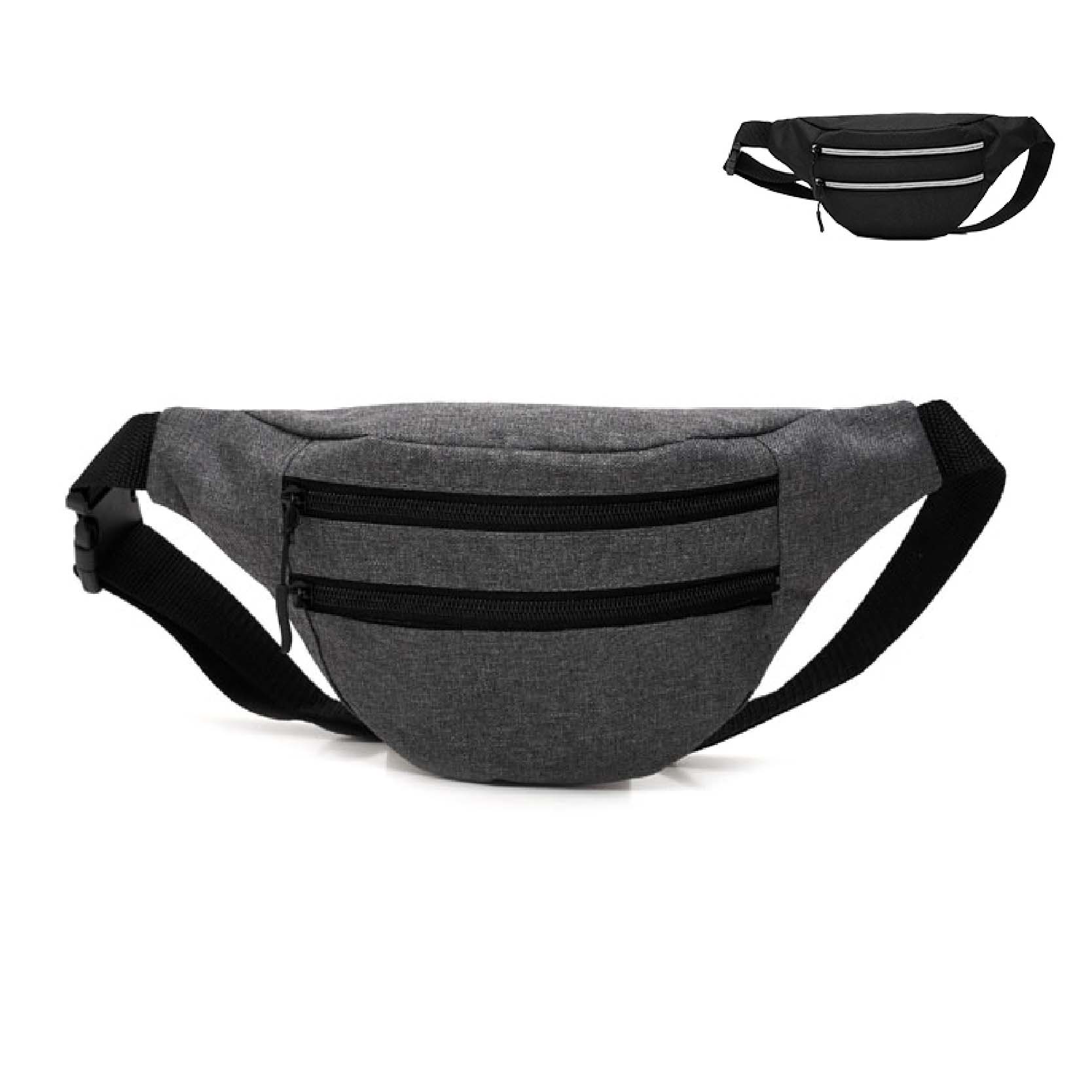 Comodo babno de tela de polyester, con bolsillo con cierre. 30cmx 15cm. Colores: gris claro, negro.