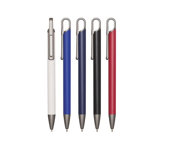 Bolígrafo GUJA. Boligrafo retráctil. Cuerpo metálico en diferentes colores. Acabado mate. Clip pulsador y puntera de color gris gun metal. Medidas: 14 cm. Materiales: Aluminio y Plástico ABS. Tinta: azul. Colores: Royal blue, Azul, Negro, Blanco, Rojo