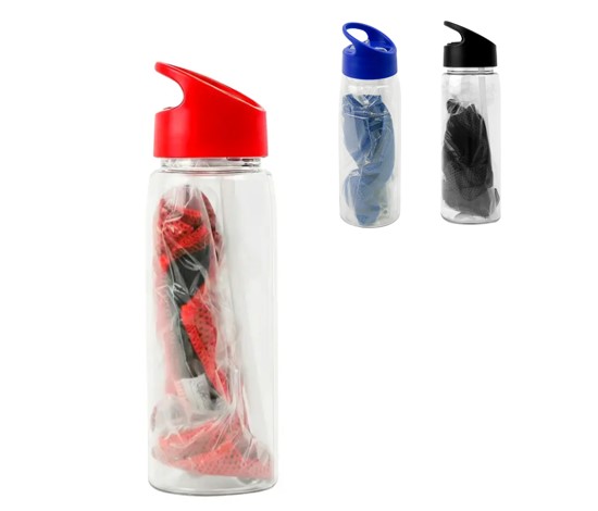 Botella Nereus. Cuenta con una toalla de poliéster de 18 x 79cm, tapa con sorbete y anillo para mejor agarre. Capacidad: 800 ml. Colores: Negro, Azul, Rojo.