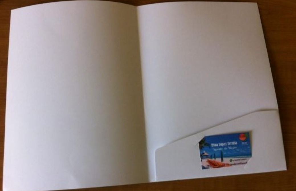 MEDIDA OFICIO COUCHE 350 GRS LAMINADO MATE POR TIRO Y RETIRO TROQUEL CON BOLSILLO Y CORTE PARA TARJETA ARMADO DE CARPETA IMPRESO A 4/4 COLORES Tamaño : 44,00 X 48,00 cms. Encuadernacion : Armado y pegado
