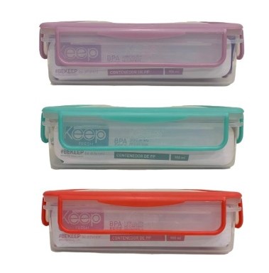Contenedor Hermético de 900 ml de la marca Keep,Con un diseño rectangular, está fabricado en material de alta calidad, garantizando durabilidad y resistencia. Su cierre hermético evita la entrada de aire y humedad, prolongando la vida útil de tus comidas y permitiendo un almacenamiento seguro. Su capacidad de 900 ml lo hace ideal para almacenar sobras, frutas, snacks y mucho más. Además, es fácil de limpiar y apto para uso en el refrigerador o congelador.