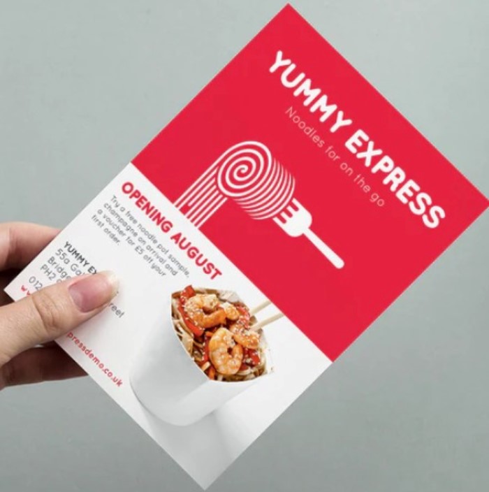 Flyer tamaño:14 x 21cm papel couche de 130 gr brillante impreso en ambas caras full color