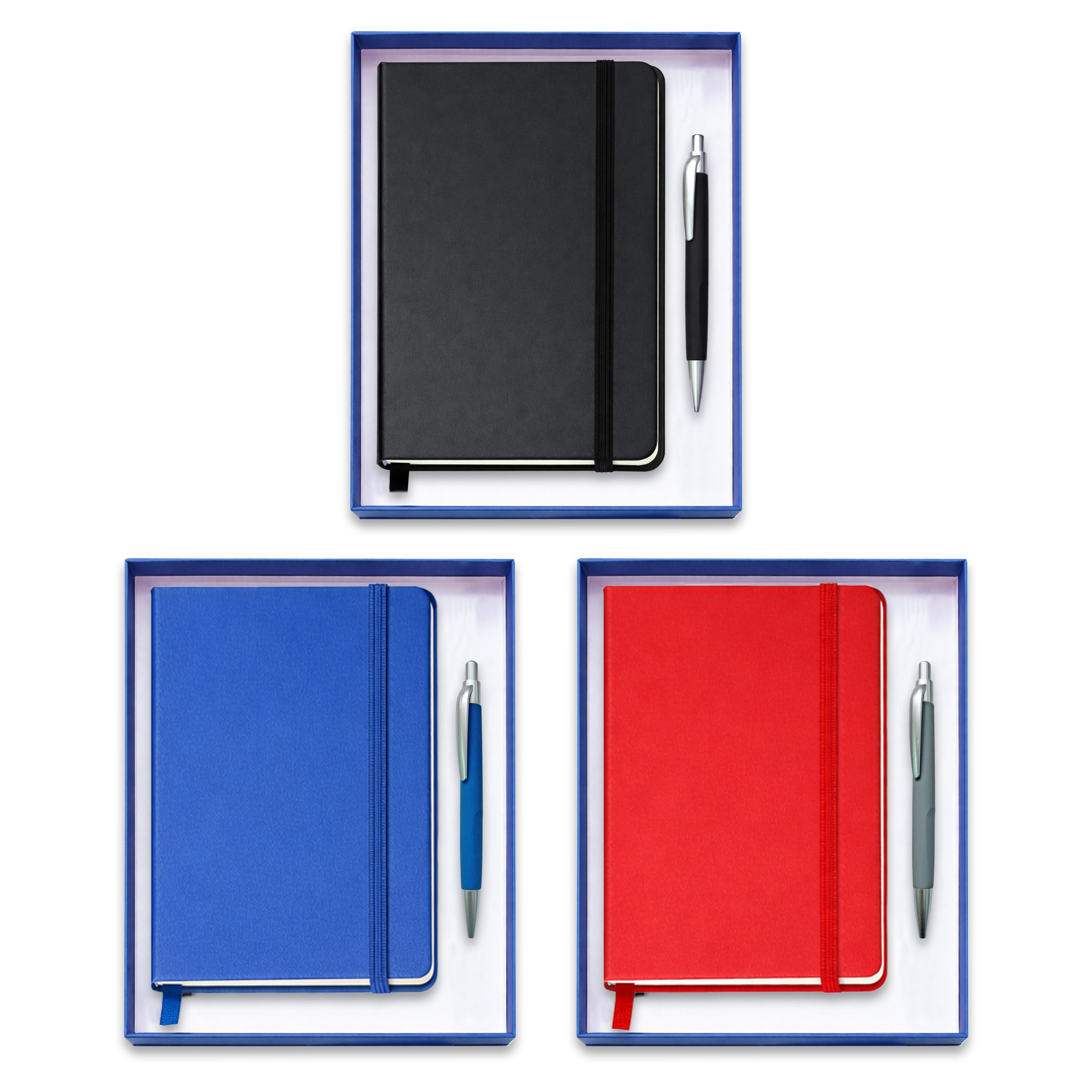 Set Regalo . Set para regalo que incluye 1 bolígrafo L65 y 1 libreta N34, todo dentro de 1 estuche. Tamaño Libreta N34: 14.2 cms. X 21.4 cms. X 1.3 cms. Tamaño Bolígrafo L65: Ø 1,15 cms. X 13,8 cms. Tamaño Estuche VL179: 23,5 X 18,5 X 2,5 cms.