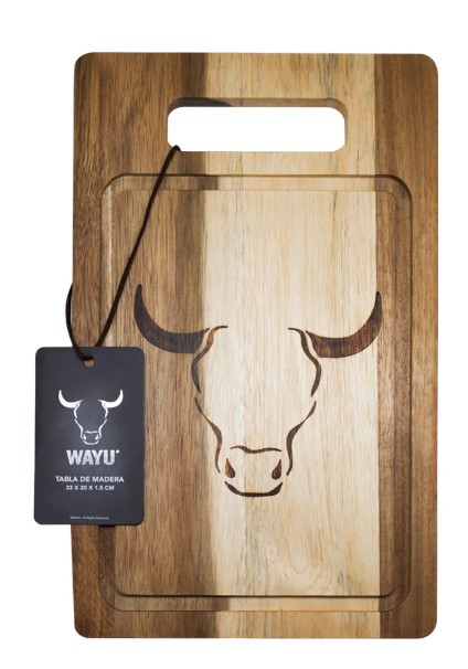 Tabla Acacia Wayu Tabla de madera 30x20x1.5cm Añade un toque sofisticado a tu picoteo o corta tus verduras y carnes con la Tabla Acacia Wayu de 33 cm. Fabricada con madera de acacia, conocida por su durabilidad y belleza natural, esta tabla será un esencial en tu hogar, perfecta para cualquier ocasión. Medidas: 33 x 20 cm, tamaño ideal para cortes precisos y presentaciones atractivas. Material: Madera de acacia, un material fuerte y elegante que asegura longevidad.